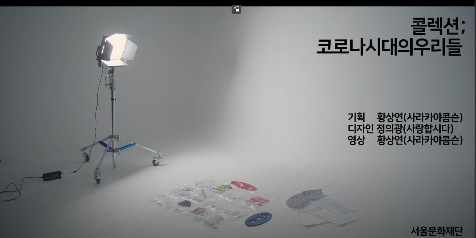 코로나 시대에 쓰였던 물건들을 진공포장해 기부자의 인터뷰와 함께 전시하는 아카이빙 프로젝트.