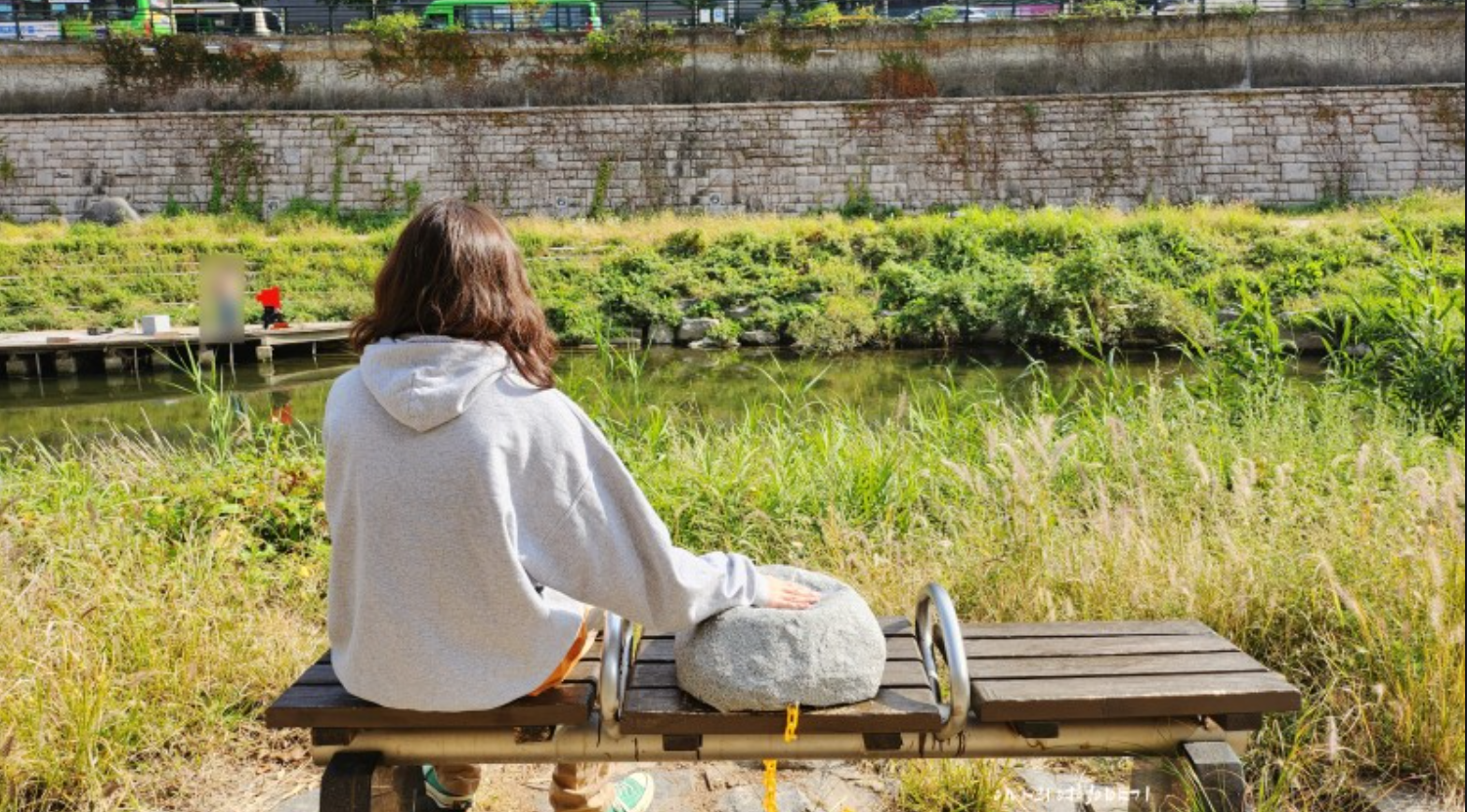 '숨쉬는 돌' 컨셉의 작품. 돌 모양의 오브제에 손을 얹으면 진동과 함께 숨소리가 들려온다.